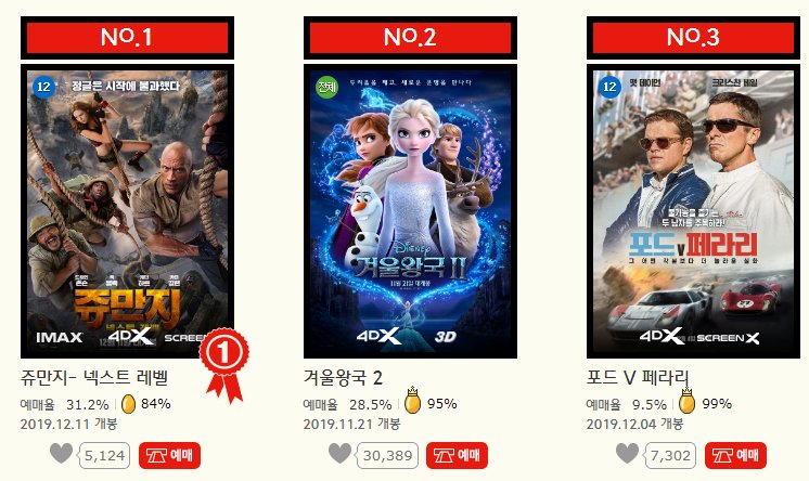 연말이 되면서 많은 영화들이 개봉을 하는 만큼 영화 선택이 어려울 때는 꼭 예매순위를 살펴보시는 것을 추천드립니다.