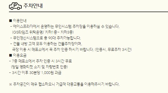 무료주차까지 되니 영화 볼 때 걱정 안 하셔도 좋을 것 같습니다.