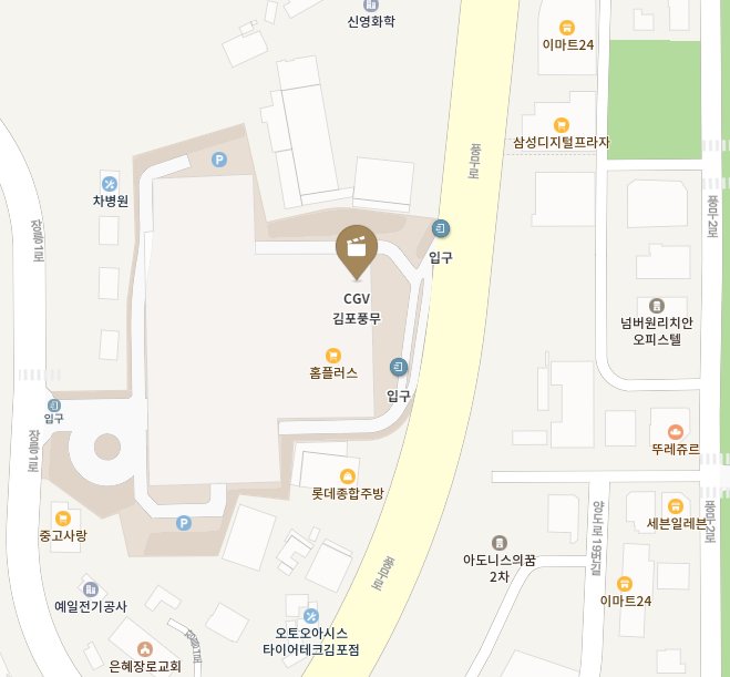 김포 풍무 cgv의 경우 풍무역과는 거리가 있어서 지하철로 이동을 하기에 다소 불편한 점이 있다.