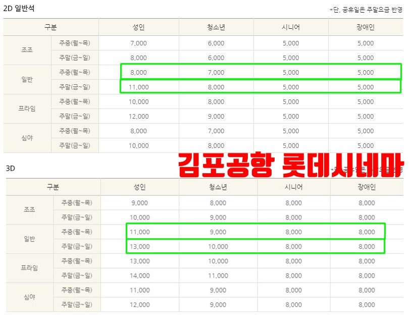 일반 주중 요금 가장 저렴한 곳 김포공항 롯데시네마