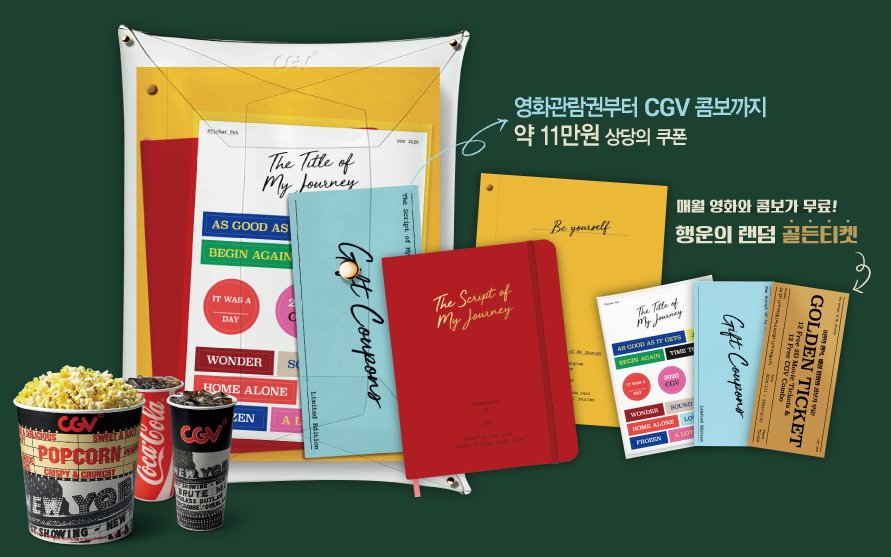 영화관람권부터 매점 쿠폰 이용권까지 다양한 쿠폰이 들어가 있는데요, 다이어리까지 함께 들어있어서 많은 분들이 관심을 보이고 있다고 합니다.