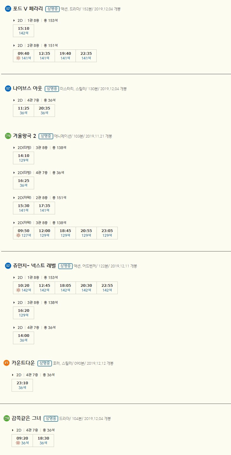 | 김포풍무 cgv 상영시간표, 현재상영작 및 예매순위 (0) | 2019.12.15 |