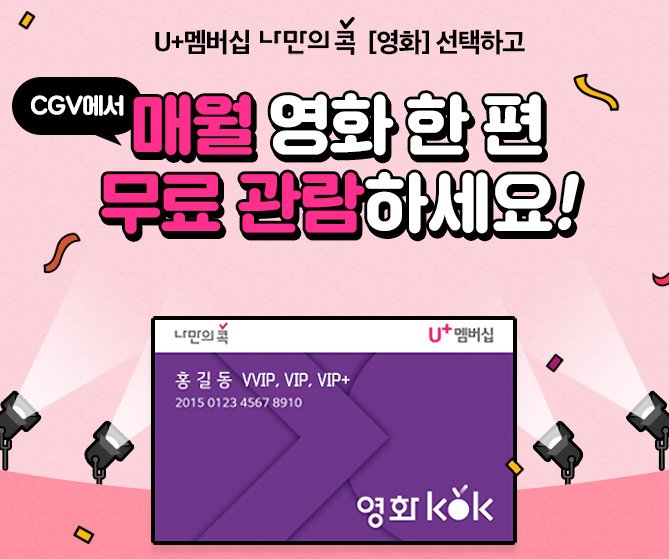 이러한 점만 잘 활용해도 한 달에 한 번씩 1년 동안 공짜로 영화를 볼 수 있으니 정말 좋은 혜택이 아닐 수 없다.