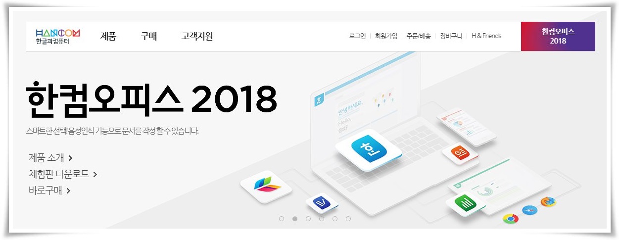 홈페이지를 살펴보면 한컴오피스 2018이 최신버전으로 안내가 되어있는 것을 확인할 수 있었다.