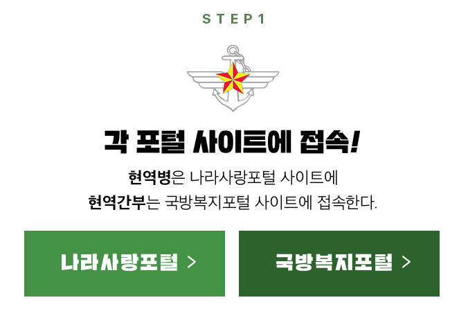 현역 간부의 경우 궁방복지포털 홈페이지로 각각 접속하면 된다.