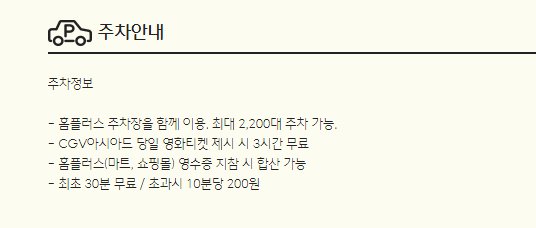 영화관람시 많은 분들이 차량을 이용하는만큼 무료주차를 이용하시는것도 좋을것 같습니다.