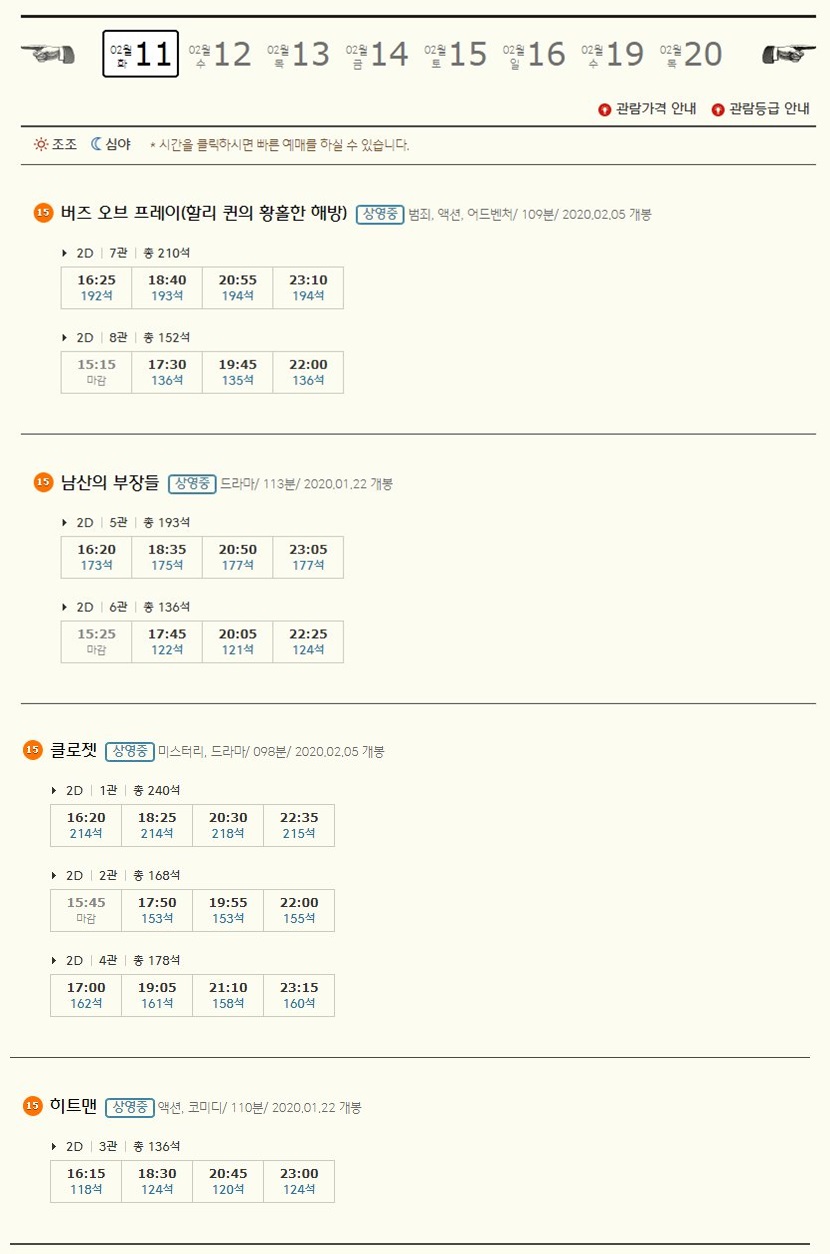| 용산 CGV 상영시간표 및 현재상영작 (0) | 2020.02.24 |
