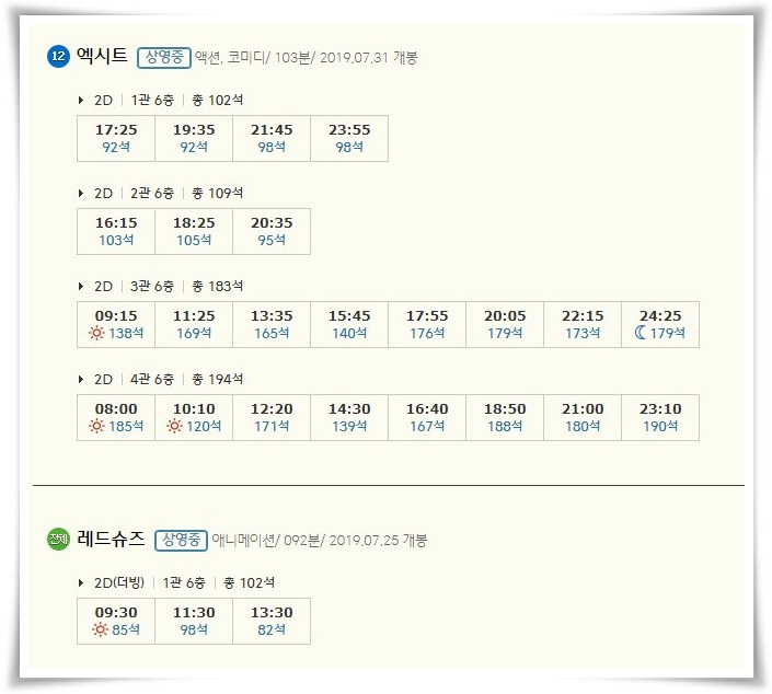 | 세종CGV 상영시간표 : 이번달 영화 예매순위 (0) | 2019.08.04 |