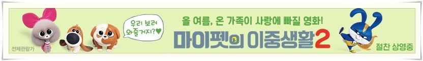 어린이들을 위한 영화들도 많이 볼 수 있습니다. 마이펫의 이중생활 2는 어린이들이 좋아하는 애완 동물을 소재로 만든 영화입니다.
