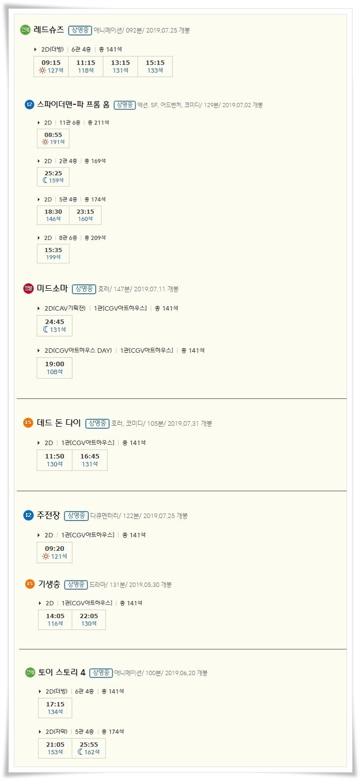 | 세종CGV 상영시간표 : 이번달 영화 예매순위 (0) | 2019.08.04 |