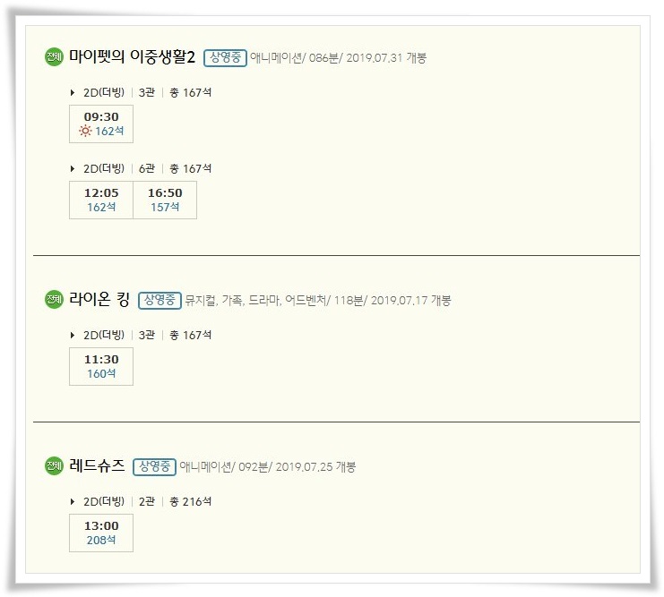 | 세종CGV 상영시간표 : 이번달 영화 예매순위 (0) | 2019.08.04 |