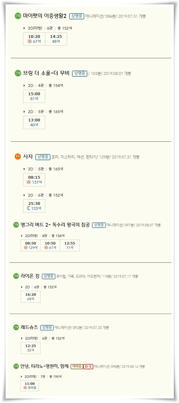 | 포항CGV 상영시간표 영화예매 순위 (0) | 2019.08.09 |