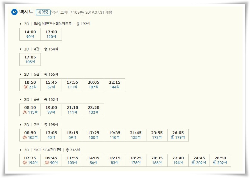 롯데시네마, 메가박스, CGV를 통틀어서 단영 최고의 인기 영화는 엑시트가 아닐까 생각합니다.