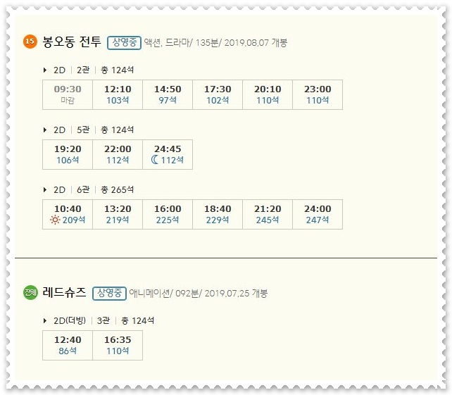 인기작답게 오늘 하루 영화 상영만 총 18번이 예정되어 있다고 합니다.