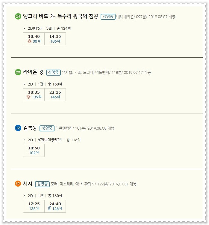 | 포항CGV 상영시간표 영화예매 순위 (0) | 2019.08.09 |