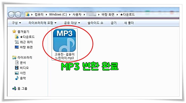 다운로드한 폴더로 이동해 보니 유튜브 mp3변환 파일이 있는 걸 확인할 수 있습니다.