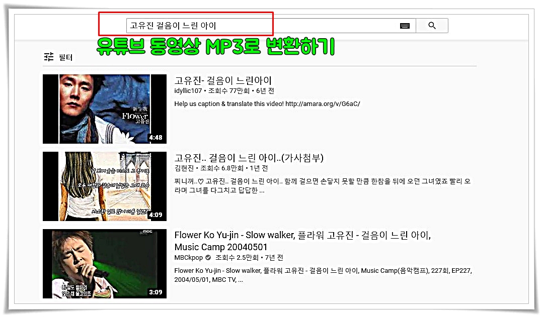 제가 좋아하는 노래를 유튜브에서 찾아서 mp3 파일로 변환해 볼까 합니다.