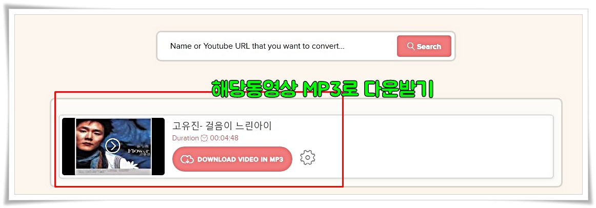 검색창에 링크를 넣고 search 버튼을 누르면 동영상이 변환이 되는 걸 확인할 수 있습니다.