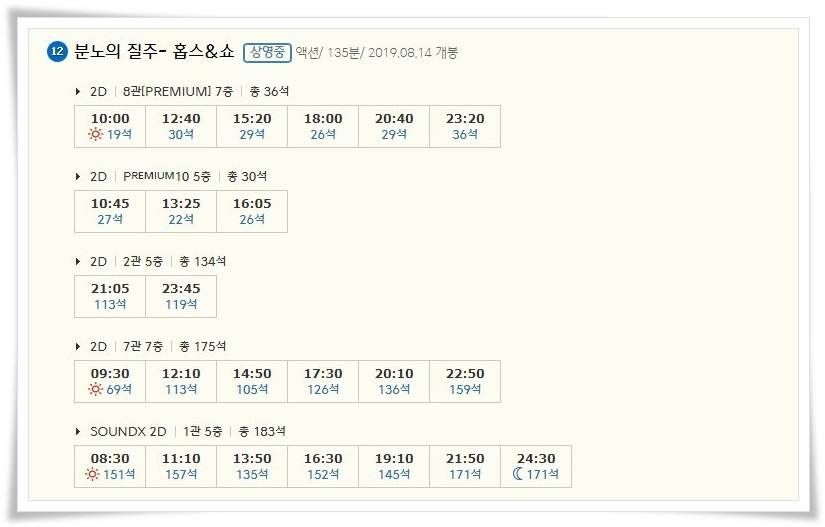 | 수원cgv 상영시간표 : 예매율 순위안내 (0) | 2019.08.11 |