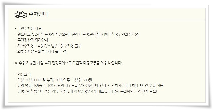 이천 CGV 주차장은 영화관 건물 지하주차장과 야외 주차장을 이용할 수 있습니다. 무인정산기 시스템이 도입되어서 출차 전에 하시면 편리하다는 점 참고하세요.