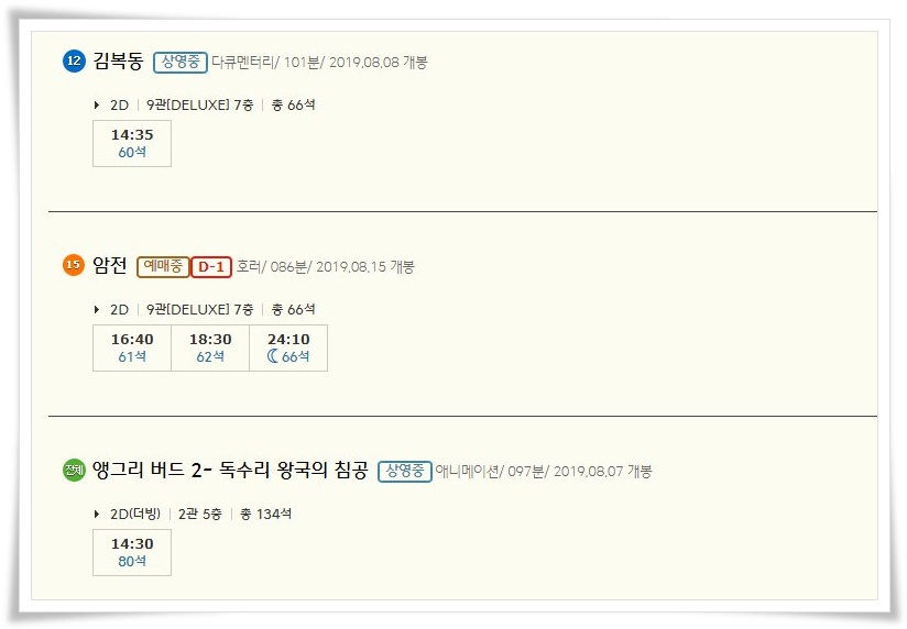 | 안산CGV 상영시간표 영화예매 순위 (0) | 2019.08.17 |