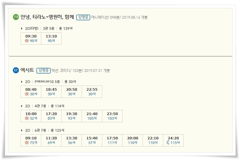 | 평택cgv 상영시간표 및 영화예매 순위 (0) | 2019.08.13 |