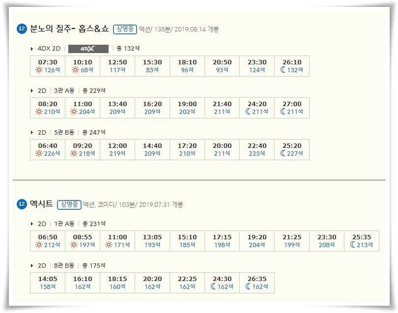 주말을 맞이하면서 각각 13회, 17회의 상영이 예정되어 있습니다. 코미디 물로 영화를 보면서 힐링하기에는 엑시트만큼 좋은 영화가 없을 것 같습니다.
