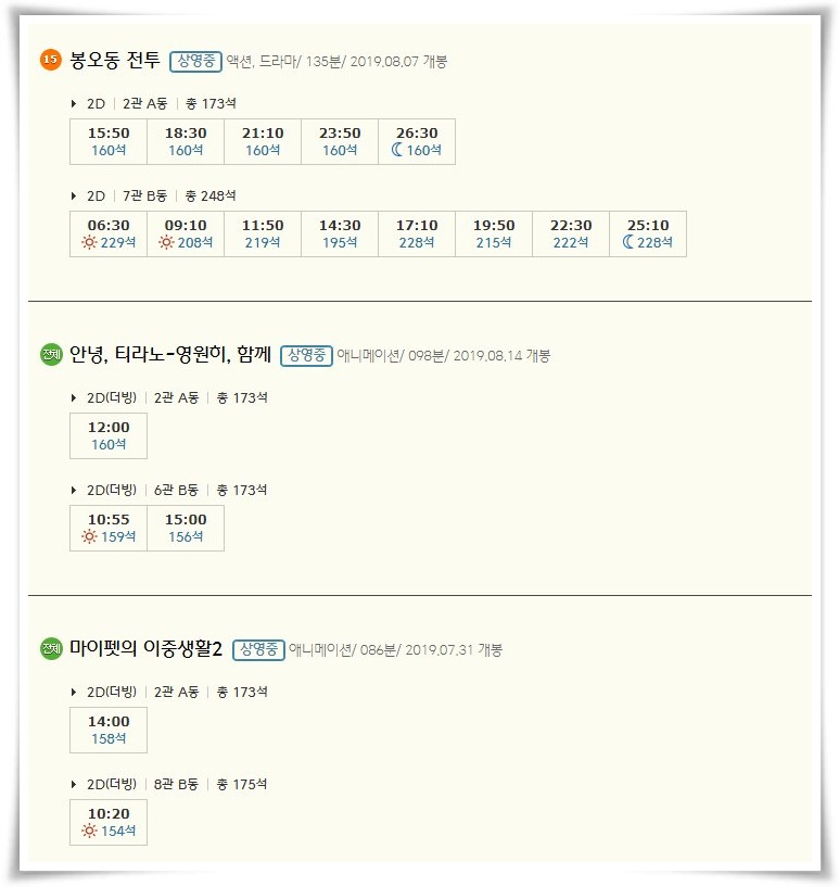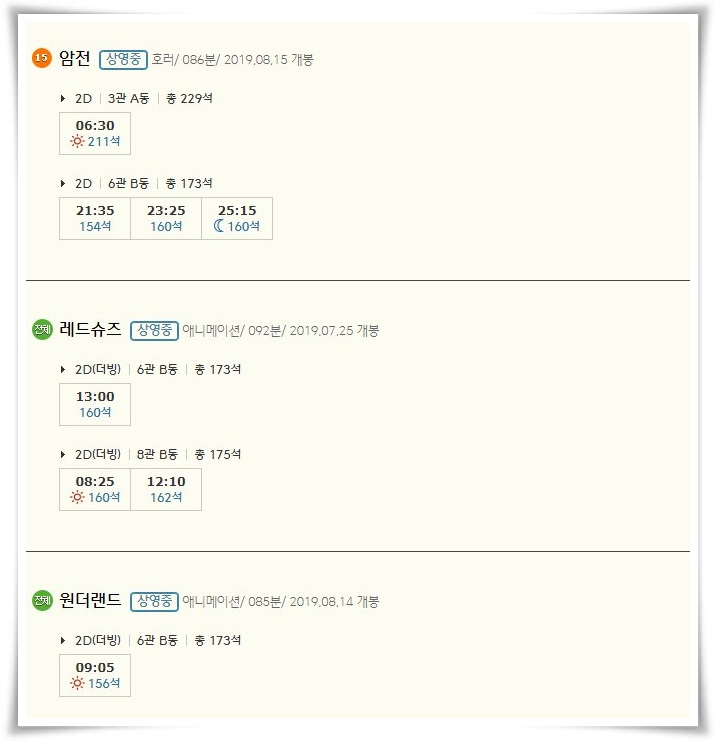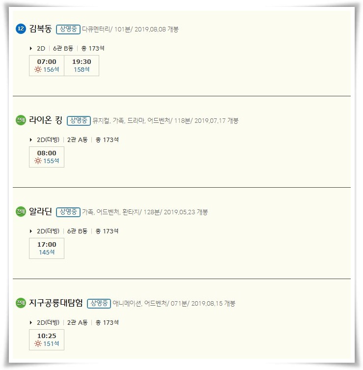 | 대전cgv 상영시간표 영화예매순위 및 할인혜택 안내 (0) | 2019.08.16 |