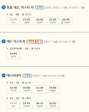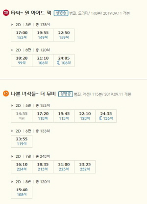 | 대구월성 cgv 상영시간표 : 현재상영작 안내 (0) | 2019.09.10 |