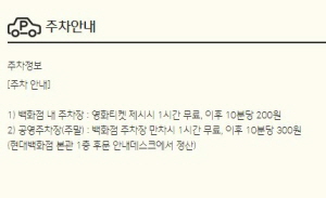 현대백화점 내에 위치하고 있다 보니 무료주차를 1시간밖에 제공받는 점이 다소 아쉬운 것 같습니다.