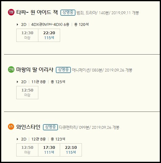 | 구로 CGV 상영시간표, 현재상영작 영화예매 순위 (0) | 2019.09.23 |