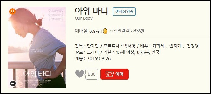 오늘 개봉한 아워바디는 한국영화입니다. 행정고시생의 이야기를 그리고 있는데 취준생들의 현실적인 이야기를 그린 영화라고 합니다.