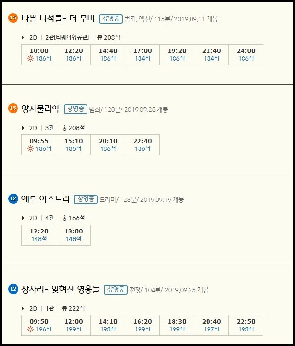 | 구로 CGV 상영시간표, 현재상영작 영화예매 순위 (0) | 2019.09.23 |