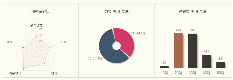 성별 예매매분포를 보면 남성들이 약 60%의 예매율을 보이면서 여성들보다 많은 관심을 보이고 있습니다.
