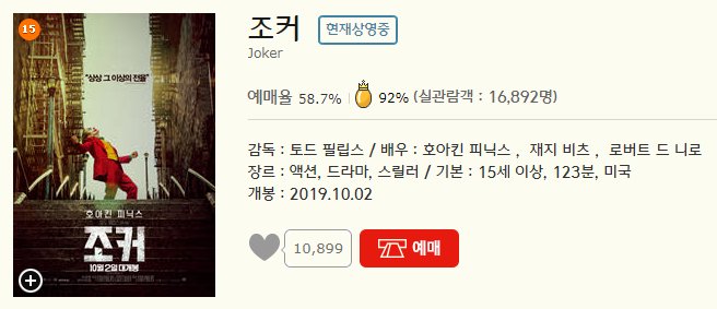 부천역 cgv 영화예매 순위를 살펴보면 조커가 현재 가장 높은 점유율을 보이고 있습니다.