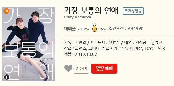 가장 보통의 연애 또한 예매순위 2위에 올라있는 영화입니다.