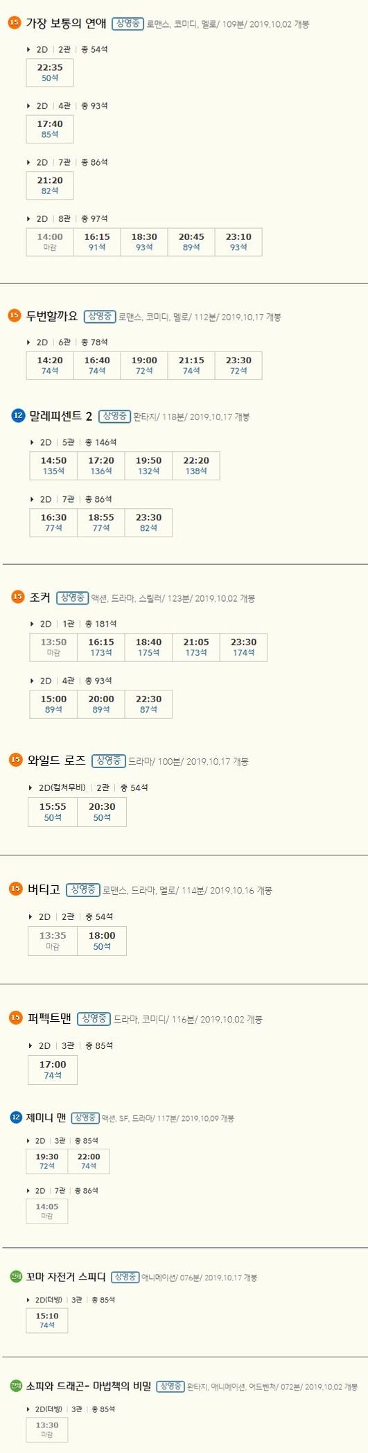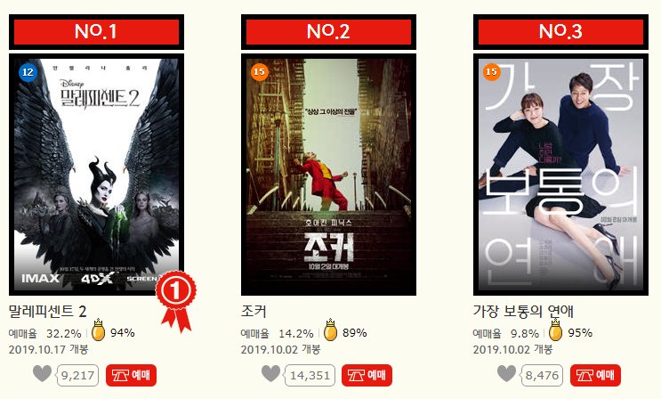 현재 말레피센트 2, 조커, 가장 보통의 연애가 영화예매 순위에서 상위권에 올라와 있습니다.