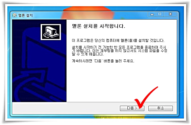 멜론플레이어 다운로드시 주의할 점은 차근차근히 읽어보면서 다음 항목으로 넘어가는 것이다. 중간에 원치 않는 프로그램 등이 내 컴퓨터에 함께 설치가 될 수 있기 때문이다.