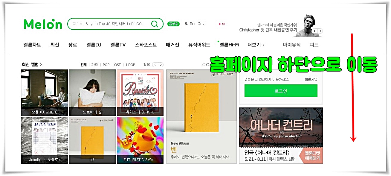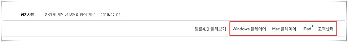 멜론 홈페이지에 접속하면 눈을 크게 뜨고 찾아봐도 멜론 플레이어를 다운받는곳이 어디인지 찾기가 어렵다. 홈페이지 하단으로 쭉 내려야만 윈도우버전, mac플레이어, ipad버전을 다운받을수가 있기 때문이다.