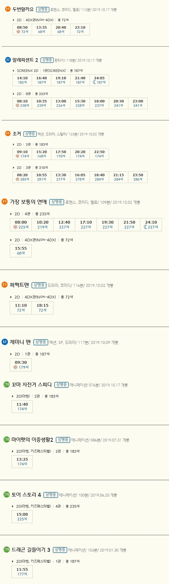 이밖에도 최근 개봉한 영화들이 많이 있습니다. 10월 20일(일) 기준 송파 cgv 상영시간표 입니다. 영화 예매 시 참고하시기 바랍니다.