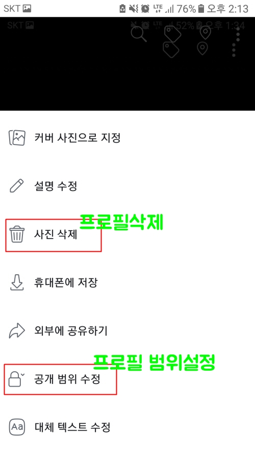 프로필 사진을 누르면 프로필 사진이 크게 확대 되면서 나오는 화면으로 바뀌게 됩니다.