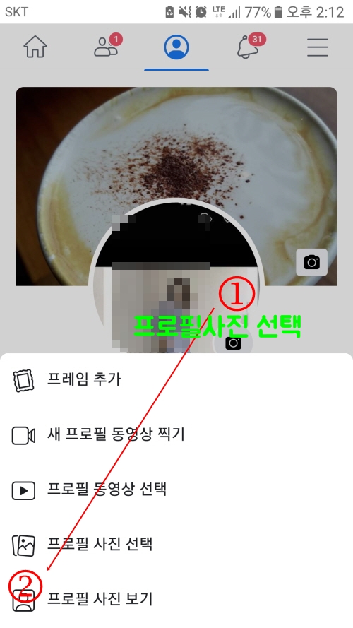 그럼 위와같이 프로필 사진 보기가 나오는데요 번호순서대로 하면 쉽게 따라할수 있으니 순서대로만 하시기 바랍니다.