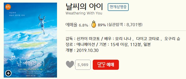 그중에서 가장 많은 사람 들리 관심을 보이고 있는 영화는 82년생 김지영, 터미네이터 다크 페이트, 날씨의 아이입니다.
