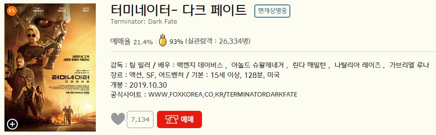| 용인 cgv 상영시간표 이달의 영화예매 순위 소개 (0) | 2019.11.05 |
