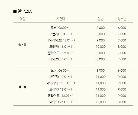 cgv 남주안점은 주중 및 주말 관람 요금이 약간 차이를 보이고 있습니다.
