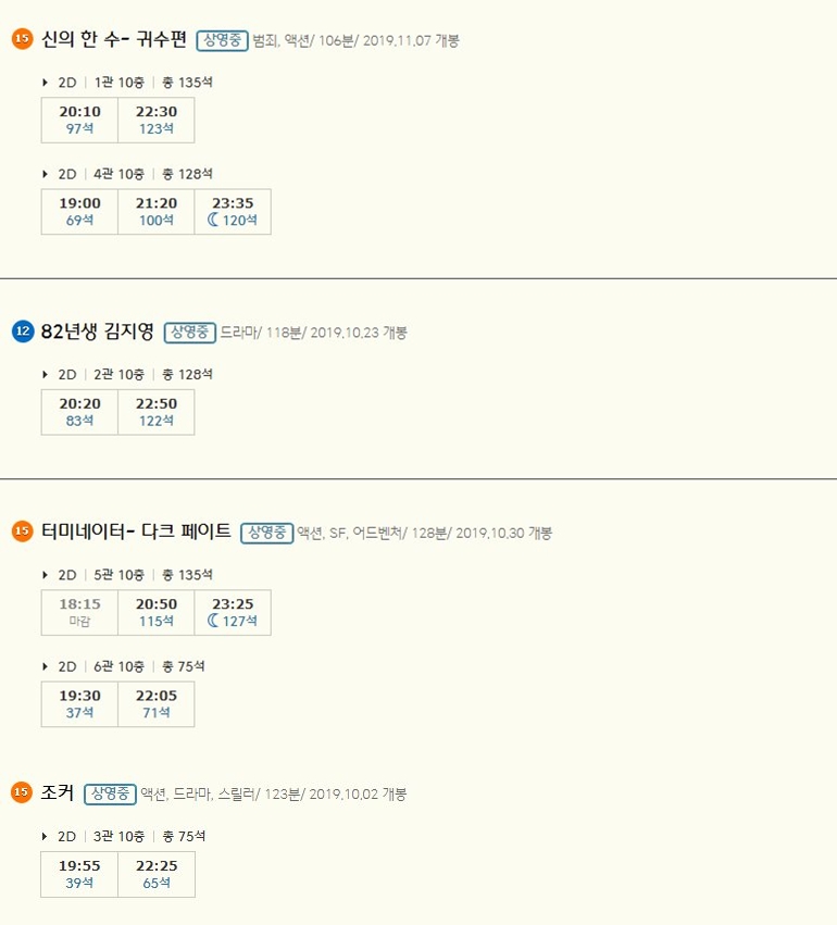 | 남주안 cgv 상영시간표 주차정보 및 실시간 예매순위 (0) | 2019.11.06 |