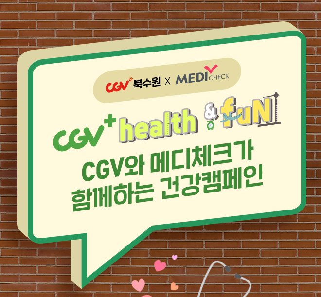 현재 북수원 CGV에서는 무료 건강검진 이벤트가 진행 중입니다.