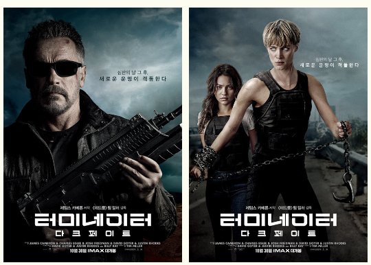 포스터상으로 봐도 세월이 많이 흐른 것을 알 수 있는데요 주연 배우들의 노쇠화로 터미네이터 후속 편이 개봉할지 궁금한 것 같습니다.