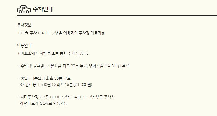여의도는 특성상 주중에 비하여 주말이 한가한 지역이라고 할 수 있습니다. 그렇게 때문에 주말 영화관 이용 시 3시간의 무료주차가 제공됩니다.