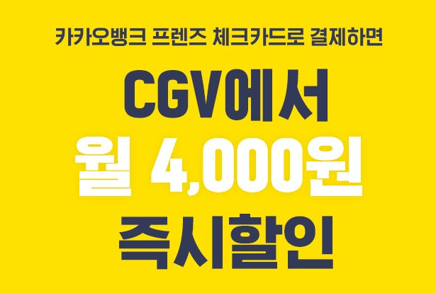 cgv 홈페이지를 살펴보면 다양한 할인혜택과 이벤트에 대해서 매주 소개가 되고 있습니다.